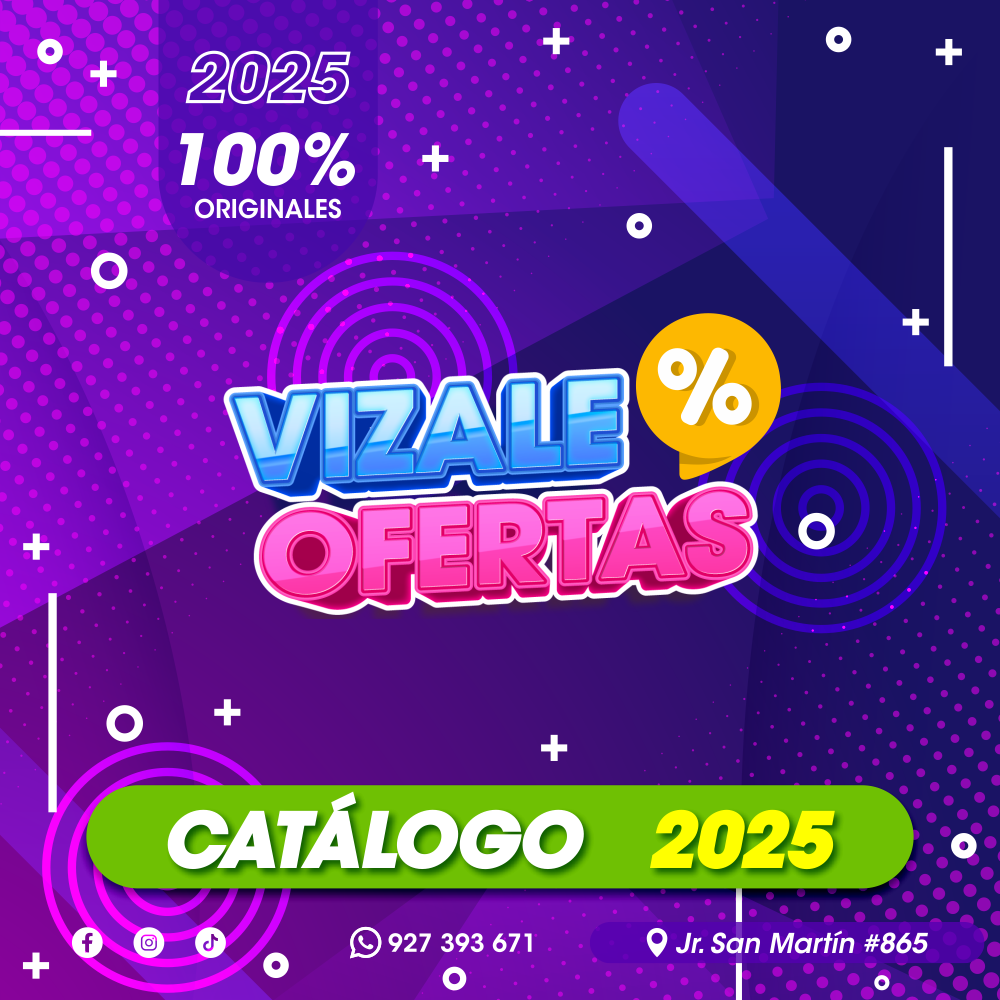 Sección catálogo Catálogo Infante Diciembre/Enero 2025 Ver catálogo Catálogo Pre-School Diciembre/Enero 2025 Ver catálogo CATÁLOGO OFERTAS Diciembre/Enero 2025 Ver catálogo COMPRA 24/7 Compra online sin horarios ENVÍOS Recibe tu pedido a nivel nacional CAMBIOS Cambia el producto en 7 días, revisa T&C PAGO Usa el medio de pago que prefieras Necesitas Ayuda? +51 927 393 671 vizalekids@gmail.com Jirón San Martin 865, Huánuco 10001 Lun-Sab 9:00am - 9:00pm Domingo 8:00am - 12:00pm Siguenos: